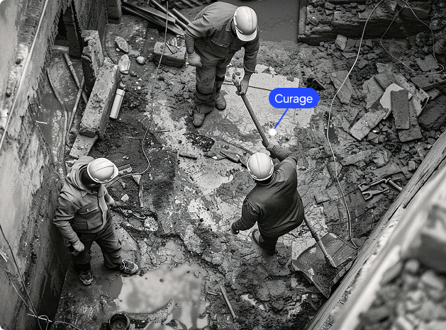 Le curage consiste à retirer uniquement les éléments non porteurs et préparatoires, tandis que la démolition détruit totalement ou partiellement la structure du bâtiment.